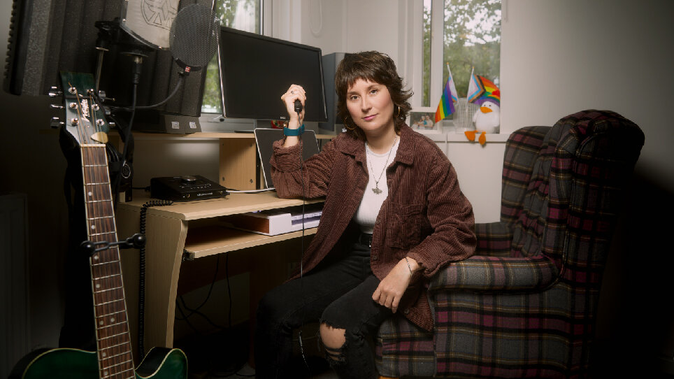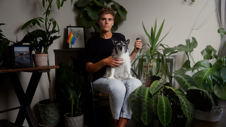 Six people have been photographed in spaces that reflect their personalities and unique interests. The photoshoots were collaborative, with each person using a clicker to also capture photos of themselves, allowing them to take control of their image.