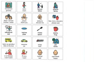 PECS (Picture Exchange Communication System) is an alternative communication system used to develop communication skills. It can be used by people of all ages and nationalities. The system makes it easier for children who, for various reasons, have difficulties or cannot express themselves to communicate what is happening at the moment, what they feel, what their needs are. You can download copies of the PECS by clicking on the images below. They have the text in both English and Ukrainian.